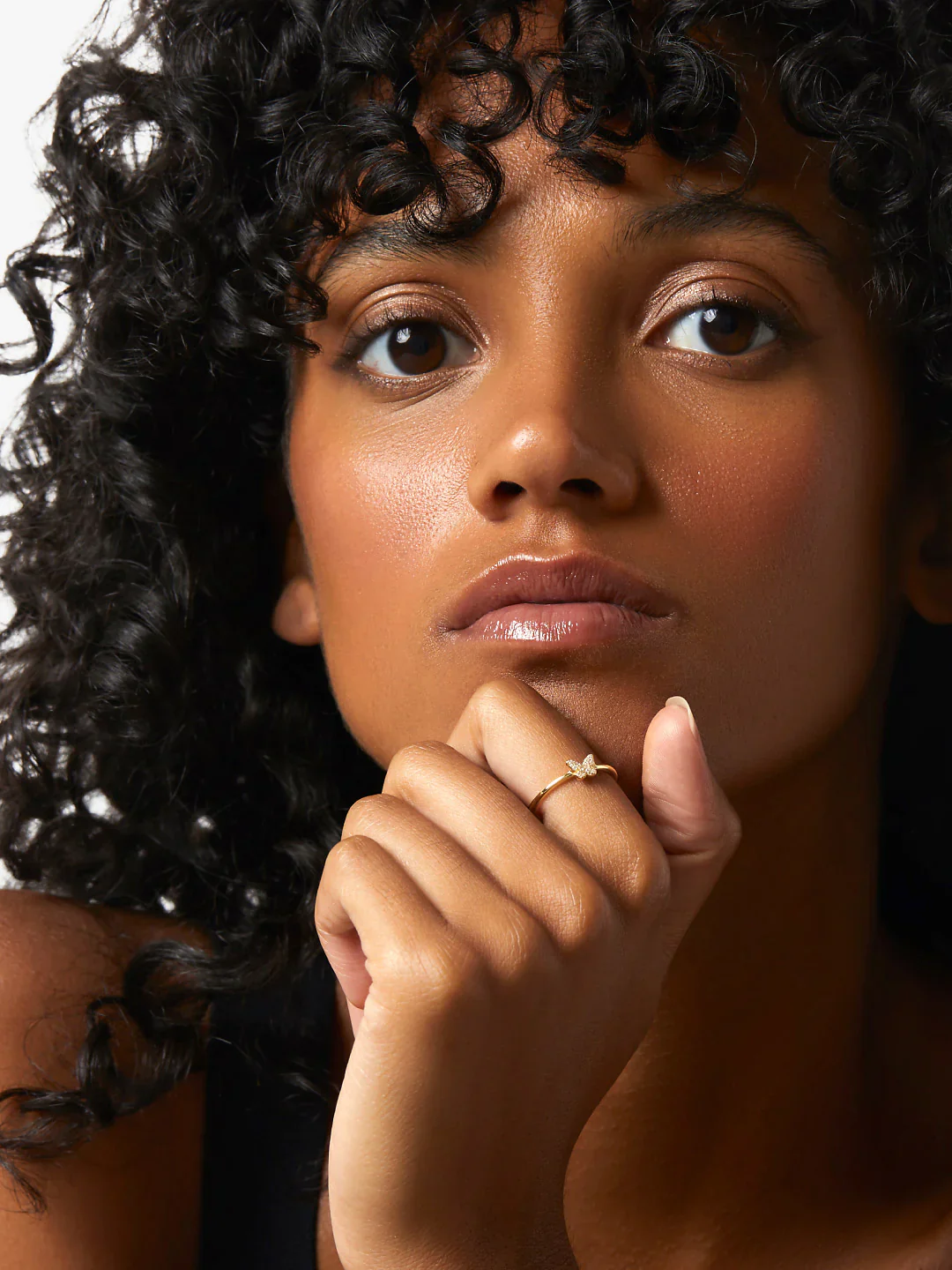 Butterflies are often seen as symbols of transformation, and this butterfly ring will surely transform your everyday ring stack. This delicate ring is crafted in recycled sterling silver, dipped in 14K gold, and set with cubic zirconia gemstones for an added touch of sparkle.