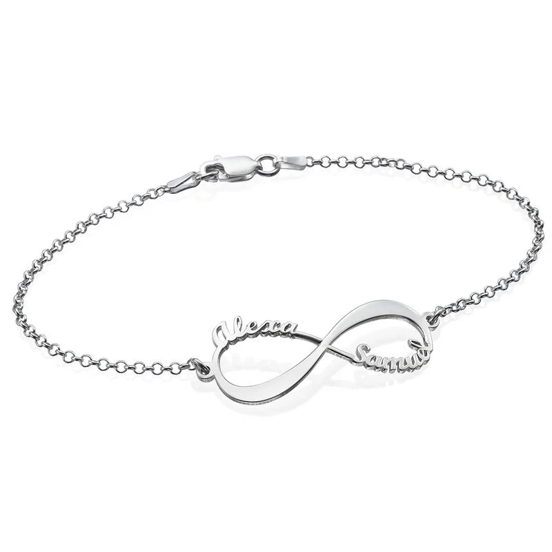 Create a beautiful reminder of your endless love. Our Infinity Bracelet with Names – 18k Gold Plated | Silver Plated features an exquisite infinity symbol with two inscriptions worked into the design. Beautifully presented on a matching chain with an adjustable extender that provides the perfect fit, this bracelet is crafted of 18k Gold Plated | Silver. Features include: