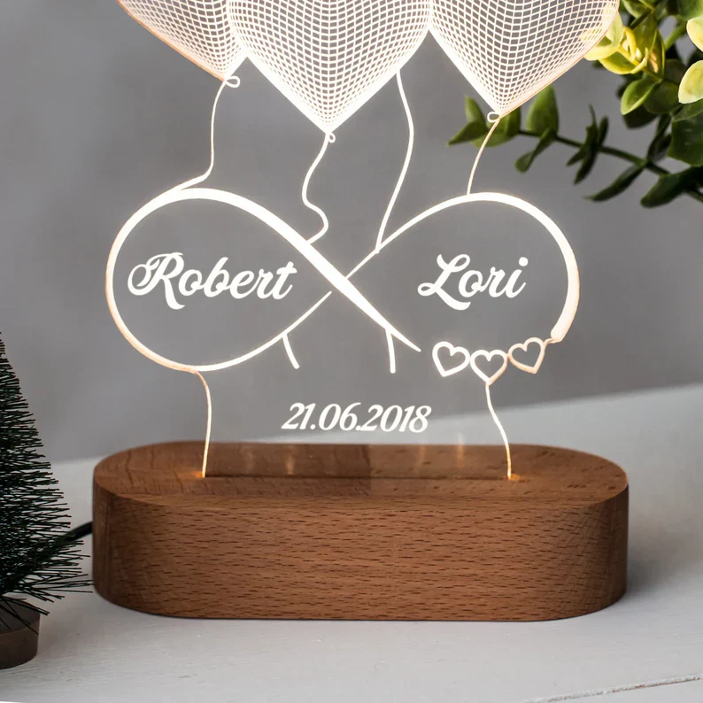 ❤ This 3D Illusion Lamp personalized as a gift for her. A beautiful 3D Night light can be bought as a gift for wife. Customized Led Lamp for a Girlfriend.