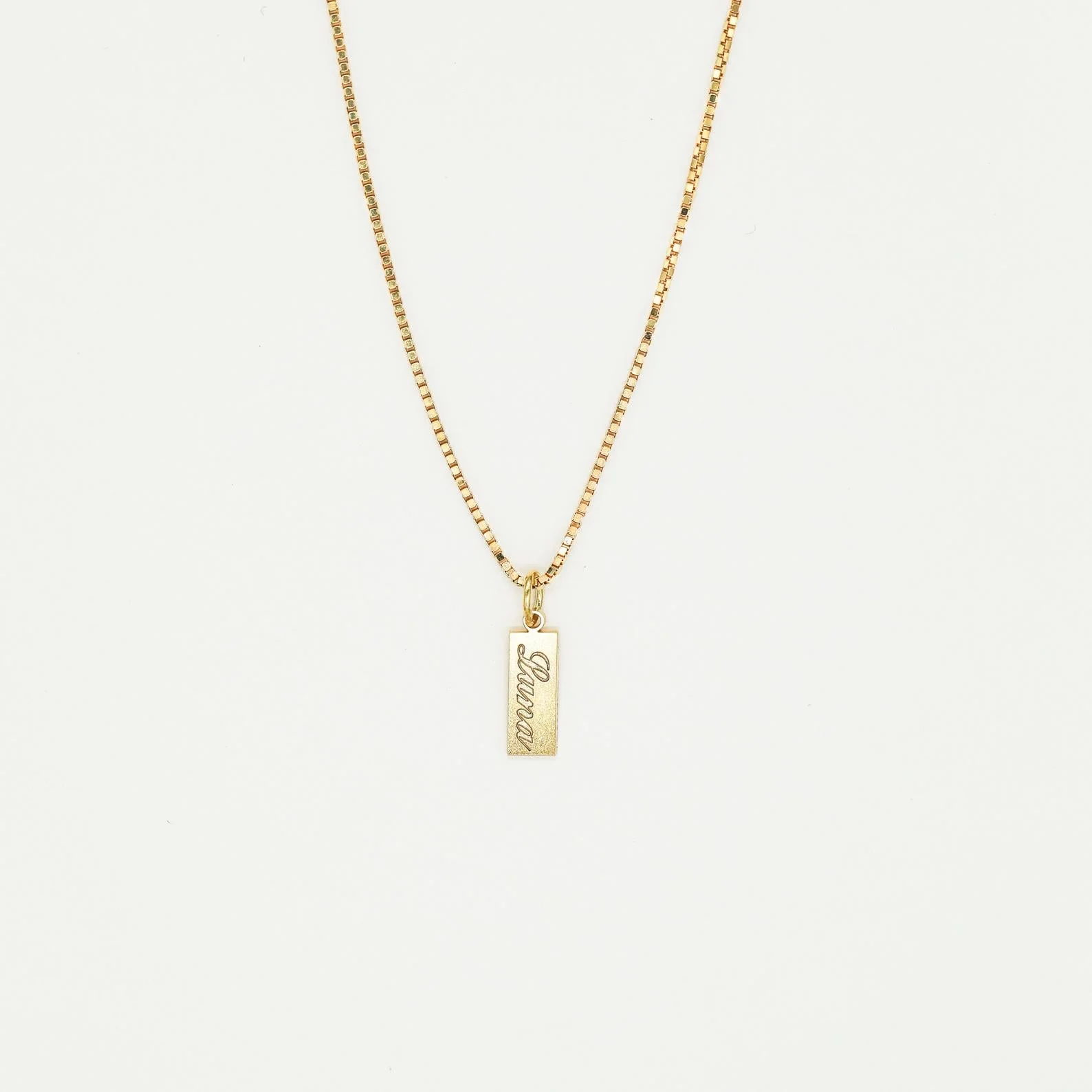 The Mini tag Name Necklace is a crowd favorite and goes with anything. It's a modern and classy way to wear your or your children's name in a trendy pendant necklace. While you're at it, why not layer with one of our other dainty chains.